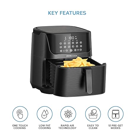 Thương hiệu MONCOOK là cái tên nổi tiếng được rất nhiều khách hàng trên thế giới chọn lựa. Với kiểu dáng đẹp mắt, sang trọng, sản phẩm MONCOOK Digital Air Fryer - 6.5L Oil-Free Non-Stick - 50 Essential Airfryer Recipe Cookbook - 12 Preset Programs - Home Fryer Adjustable Thermostat, LED Display & là sự lựa chọn hoàn hảo nếu bạn đang tìm mua một món cho riêng mình.