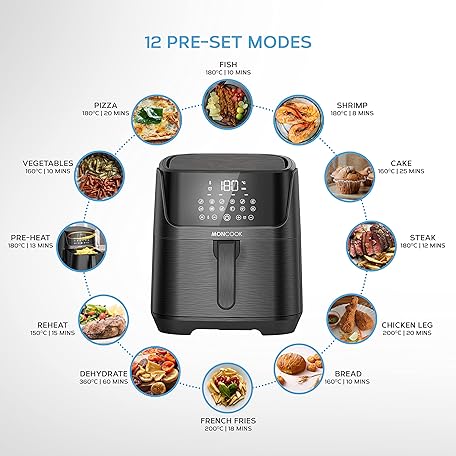 Sản phẩm MONCOOK Digital Air Fryer - 6.5L Oil-Free Non-Stick - 50 Essential Airfryer Recipe Cookbook - 12 Preset Programs - Home Fryer Adjustable Thermostat, LED Display & đang được bán với giá ưu đãi là $87.5052 tại nước Đức.