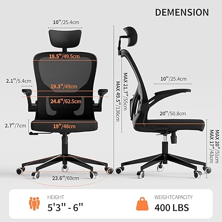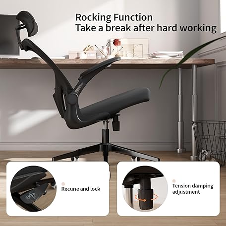 Thông tin sản phẩm Monhey Ergonomic Office Chair - Adjustable Desk Chair with Lumbar Support, Headrest, Folding Armrests & Mesh Backrest - Home Office Chair Swivel Breathable