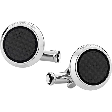 Montblanc Extreme 2.0 Stainless Steel Round Cufflinks with Carbon Fiber Effect, Silver and Black, Uni Adult, Luxury Adult, Classic Design Stainless Steel, Stainless Steel, No Gemstone