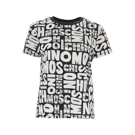 Moschino Damen-T-Shirt Kurzarm Schwarz Damen-T-Shirt Kurzarm mit Logo Lettering Kontrast Frühling Sommer 2022 100% Baumwolle A19139016 1555, Schwarz , Medium