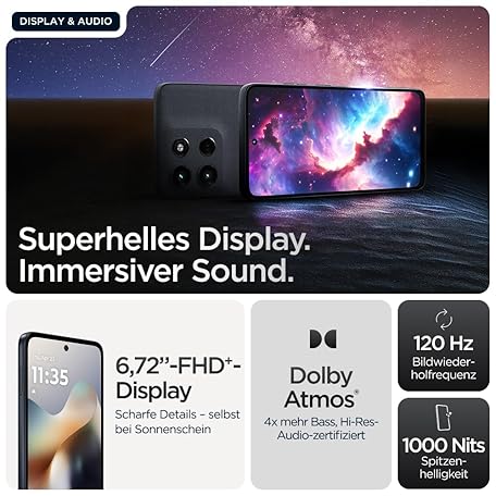 Sản phẩm Motorola Moto g56 5G Smartphone (6.72" FHD+ Display with Gorilla Glass 7i, 50MP Camera with Moto-AI, 8/256GB, 5100mAh, Extremely Temperature Resistant) Pantone Black Oyster + Protective Cover đang được bán với giá ưu đãi là $226.5783 tại nước Đức.