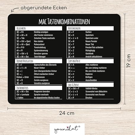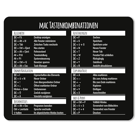 Sản phẩm Mousepad with MAC Key Combinations, 24 x 19 cm, Standard Size Mousepad, Non-Slip, Water-Repellent, Shortcuts, Shortcuts, Black/White, DV675 đang được bán với giá ưu đãi là $12.4587 tại nước Đức.