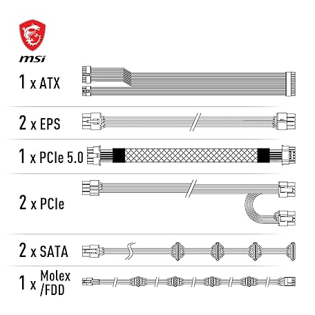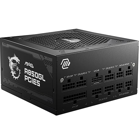 Thông tin sản phẩm MSI MAG A850GL PCIE5 Power Supply, 850W, 80 Plus Gold, Fully Modular, ATX 3.0, Supports PCIe 5.0 GPU, 120 mm FDB Fan with Dynamic Ball Bearings, Full-Bridge LLC, Black Flack Cable