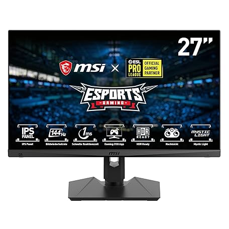 Sản phẩm MSI Optix MAG274R eSports Gaming Monitor 27 Inch (68.5 cm), FHD (1920 x 1080), 144Hz, 1 ms, Flat, IPS, FreeSync, RGB, DE Version đang được bán với giá ưu đãi là 0 tại nước Đức.