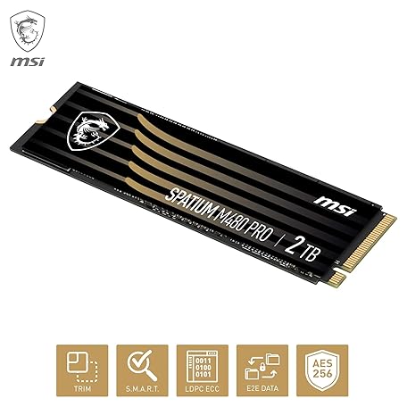 Thông tin sản phẩm MSI SPATIUM M480 PRO SSD 2TB - PCIe 4.0 NVMe M.2 Internal SSD, 7400MB/s Read & 7000MB/s Write, 3D NAND, Integrated Data Security, Center - 5 Years Quality (1400TBW)