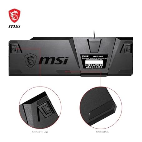 Thông tin sản phẩm MSI Vigor GK41 FR Mechanical Gaming Keyboard - Kailh Red Switches (Linear), Ergonomic Keys, Non-Slip Base, 6 Solid Colour LEDs / 10 Lighting Zones, Mystic Light, USB 2.0, Full