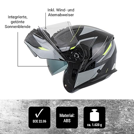 Thông tin sản phẩm MTR K-4 Evo Flip-Up Helmet, Jet Helmet & Full-Face Helmet ECE 22.06 Tested, Motorcycle Helmet with Sun Visor, Moped Helmet with Comfort Lining, Motorcycle Helmet Men & Women, Matt Black, XS-XXL