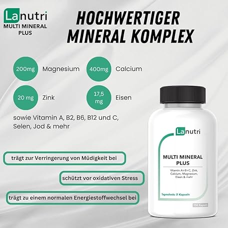 Thương hiệu Lanutri là cái tên nổi tiếng được rất nhiều khách hàng trên thế giới chọn lựa. Với kiểu dáng đẹp mắt, sang trọng, sản phẩm Multi Mineral Plus - High Quality Multimineral and Vitamin Complex with Premium Raw Materials - 150 Capsules, Made in Germany là sự lựa chọn hoàn hảo nếu bạn đang tìm mua một món cho riêng mình.
