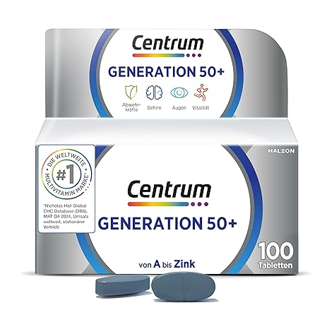 Sản phẩm Multivitamin - Centrum Generation 50+ - High Quality Dietary Supplement with Micronutrients - For Adults from 50 Years - Vitamins, Minerals, Trace Elements - 1 x 100 Tablets đang được bán với giá ưu đãi là $47.1752 tại nước Đức.