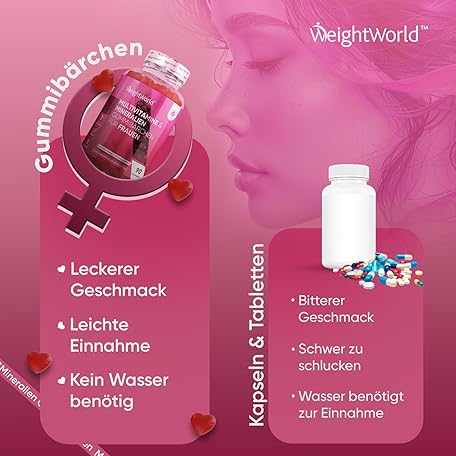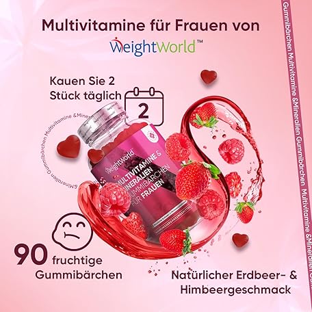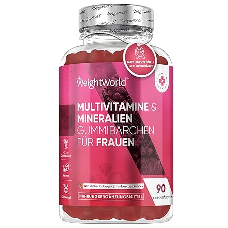 Sản phẩm Multivitamin Gummies for Women - With Omega 6, 9, Zinc, Calcium, Vitamin C, Hyaluron, CoQ 10, B12, Biotin - 90 Vegan Gummy Bears - Strawberry & Raspberry Flavour - Multivitamin Complex - WeightWorld đang được bán với giá ưu đãi là $32.8526 tại nước Đức.