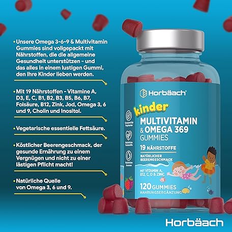 Thương hiệu Horbäach là cái tên nổi tiếng được rất nhiều khách hàng trên thế giới chọn lựa. Với kiểu dáng đẹp mắt, sang trọng, sản phẩm Multivitamin Gummy Bears for Children with Omega 3 6 9 | 19 Important Nutrients with Iodine, Vitamin C, E, D3, B6, B7, B12 | 120 Vegetarian Gummies | Berry Flavour | Horbaach là sự lựa chọn hoàn hảo nếu bạn đang tìm mua một món cho riêng mình.