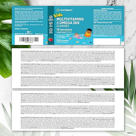 Thông tin sản phẩm Multivitamin Gummy Bears for Children with Omega 3 6 9 | 19 Important Nutrients with Iodine, Vitamin C, E, D3, B6, B7, B12 | 120 Vegetarian Gummies | Berry Flavour | Horbaach