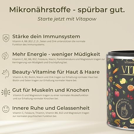 Thương hiệu Vitapow là cái tên nổi tiếng được rất nhiều khách hàng trên thế giới chọn lựa. Với kiểu dáng đẹp mắt, sang trọng, sản phẩm Multivitamin Powder + Magnesium, Zinc & Selenium - Vitamins A-Z High Dose - Strengthen Immune System - High-Quality Micronutrients - No Added Sugar - Vegan - Made in Germany - ACE Flavour là sự lựa chọn hoàn hảo nếu bạn đang tìm mua một món cho riêng mình.