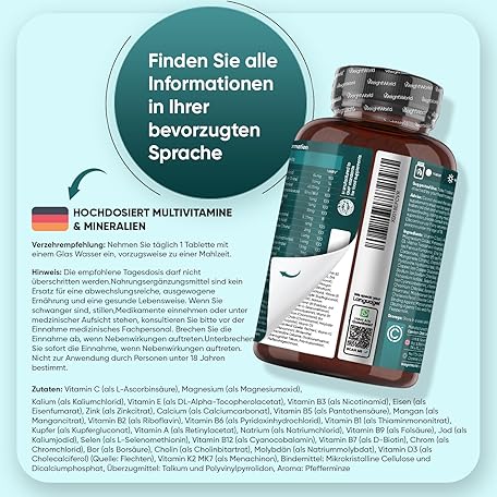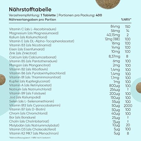 Thông tin sản phẩm Multivitamin Tablets, 400 Vegan Pieces with 27 Vitamins and Minerals, Vitamin A to Z, Immune System, Energy and Metabolism (EFSA), Dietary Supplement for Men and Women, From WeightWorld