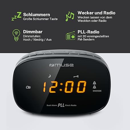 Sản phẩm Muse M-150-CR Radio Alarm Clock FM PLL Radio with 20 Memory Spaces Two Alarms, Snooze Function & Dimmable LED Display in Amber đang được bán với giá ưu đãi là $23.871 tại nước Đức.