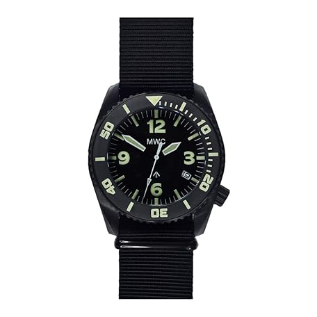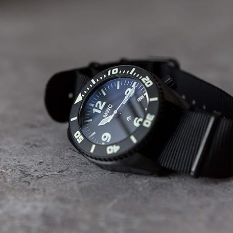 Sản phẩm MWC Dephtmaster 1000mt Automatic Black PVD Steel Sapphire Ceramic Date Diver Fabric NATO Military Men's Watch đang được bán với giá ưu đãi là $609.9095 tại nước Đức.