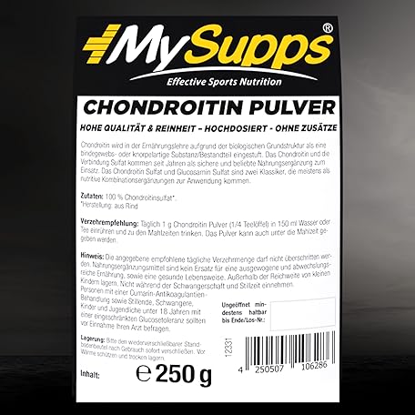 Sản phẩm My Supps 250 g Chondroitin Powder High Dose 100% Pure & Laboratory Tested - Chondroitin Sulphate for Effective Cartilage and Joint Support - Chondroitin Sulphate Made in Germany đang được bán với giá ưu đãi là $25.2553 tại nước Đức.