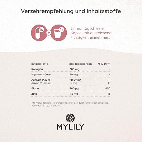 Sản phẩm MYLILY Vegan Collagen | Hyaluronic and Collagen Capsules | Colage Capsules High Dose Vegan | Vegan Colagen, Hyaluron, Organic Acerola, Zinc & Vitamin B7 | Natural & Vegan | 90 Capsules đang được bán với giá ưu đãi là $28.2637 tại nước Đức.