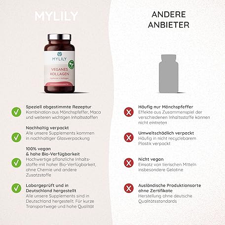 Thông tin sản phẩm MYLILY Vegan Collagen | Hyaluronic and Collagen Capsules | Colage Capsules High Dose Vegan | Vegan Colagen, Hyaluron, Organic Acerola, Zinc & Vitamin B7 | Natural & Vegan | 90 Capsules