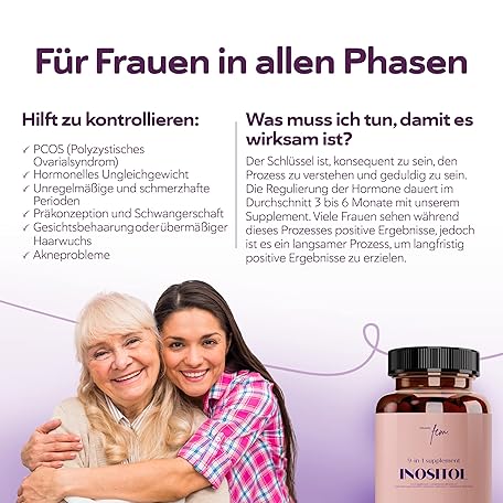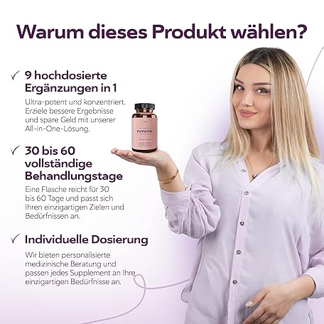 Thông tin sản phẩm Myo- & D-Chiro-Inositol Komplex 4100 mg – 9-in-1 mit aktivem Folat (5-MTHF), Chrom, Zink, Vit. B6, B12 & D3 – Vegan & ohne Zusätze – 180 Kapseln