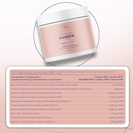 Thông tin sản phẩm Myo-Inositol & D-Chiro PCOS 4100MG Vegan Capsules - Metabolic Function, Hormonal Balance and Mental Wellbeing - 9-in-1 with Folate 5-MTHF, Chrome, Zinc, Vitamin B6, B12 & D3