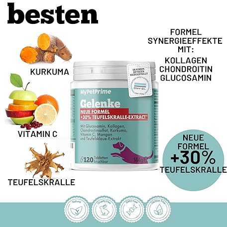 Sản phẩm MyPetPrime JointSupport Formula with MSM, Green-Lipped Mussel Powder, Glucosamine, Chondroitin and Devil's Claw 120 + 5 Extra Tablets Included đang được bán với giá ưu đãi là $31.5119 tại nước Đức.