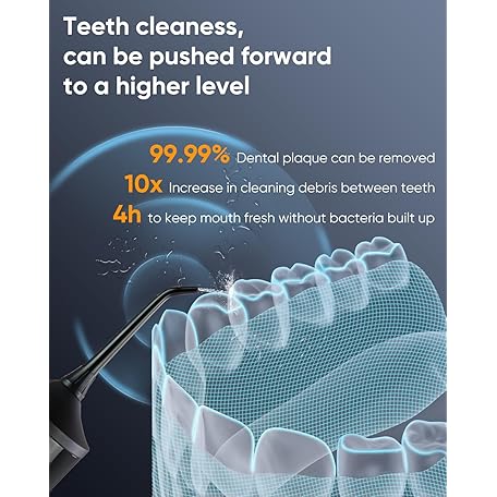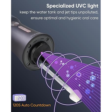 Thông tin sản phẩm MySmile LP221 UVC Sterilizable Cordless Water Flosser for Teeth, 335ml, Portable OLED Display, Dental Floss with 4 Modes, 8 Nozzle Tips and a Storage Bag for Home and Travel