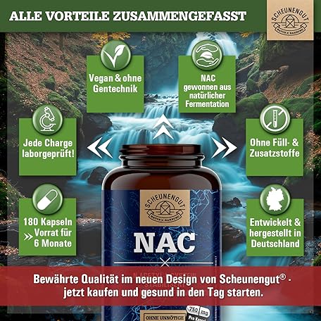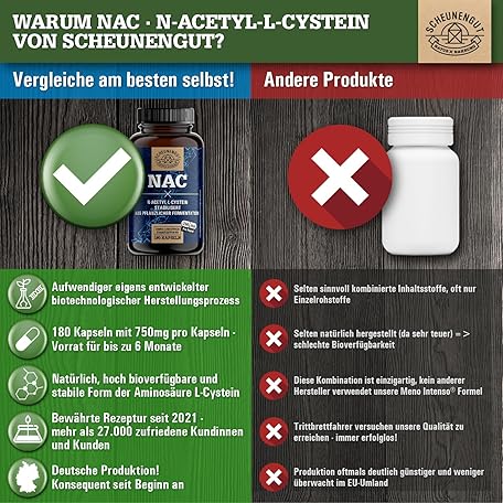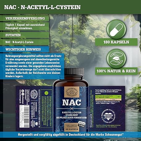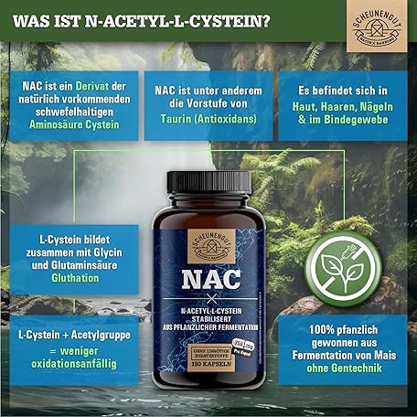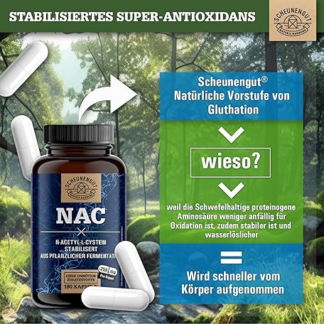 Sản phẩm NAC Important: 750 mg N Acetyl Cysteine High Dose per Capsule High Bioavailability and Compatibility No Additives NAC Capsules NAC 800 Vegan and Laboratory Tested DE SCHEUNENGUT® đang được bán với giá ưu đãi là $21.4076 tại nước Đức.