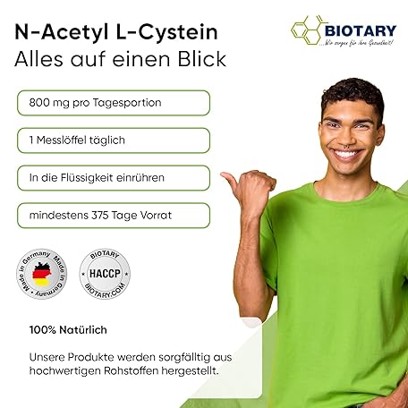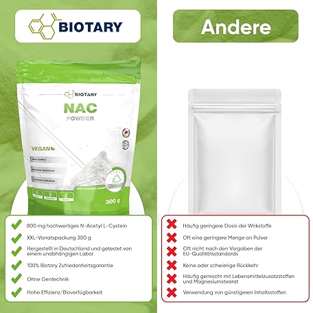 Thương hiệu Biotary là cái tên nổi tiếng được rất nhiều khách hàng trên thế giới chọn lựa. Với kiểu dáng đẹp mắt, sang trọng, sản phẩm NAC Pulver, 300 g pro Beutel, 12 Monatsvorrat, Messlöffel, N-Acetyl L-Cystein, Vegan, Laborgeprüft, Hochdosiert là sự lựa chọn hoàn hảo nếu bạn đang tìm mua một món cho riêng mình.
