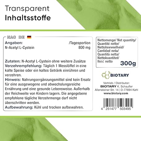 Thông tin sản phẩm NAC Pulver, 300 g pro Beutel, 12 Monatsvorrat, Messlöffel, N-Acetyl L-Cystein, Vegan, Laborgeprüft, Hochdosiert