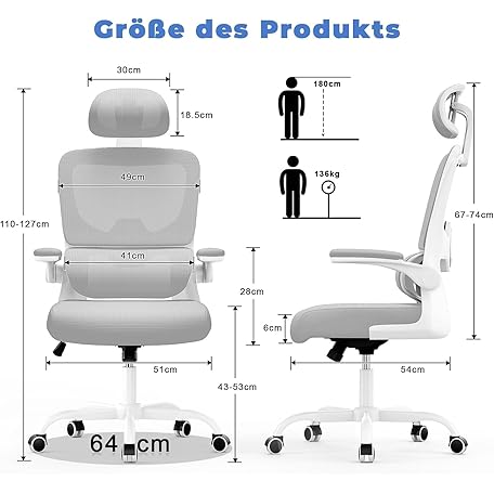 Sản phẩm naspaluro Office Chair, Ergonomic Office Chair with Adjustable Headrest, Armrests, Dynamic Lumbar Support, Desk Chair with Breathable Mesh Cover for the Home Office, Upgrade Grey đang được bán với giá ưu đãi là $82.622 tại nước Đức.