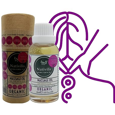 Nativilis Organic Vitamin A+C+E Omega-6 Massage Oil Copaiba Beta-Caryophyllene Relaxing Stress Relieving Muscle Soreness Stress Pain Relief Organic Blend Lavender Ylang Ylang Clary Sage Sunflower