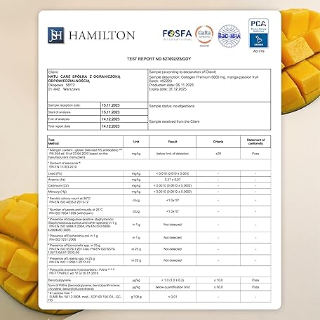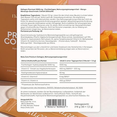Thông tin sản phẩm natu.care - Natural Collagen Powder 5000 mg - Collagen Powder Hydrolysate - Marine Collagen Powder with Vitamin C - Peptides Type 1 - Colagen Powder High Dose Skin Hair (30 Servings, Mango Passion