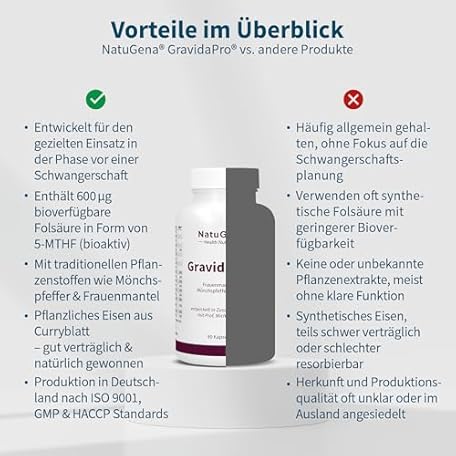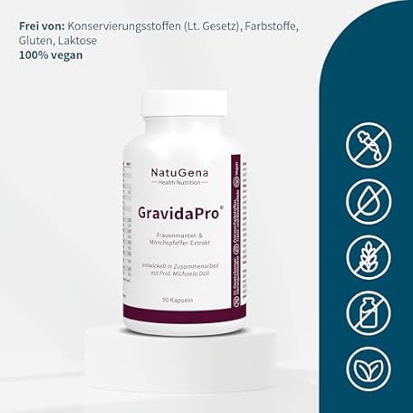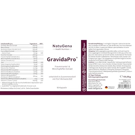 Sản phẩm NatuGena GravidaPro with Folic Acid, Maca, Fenugreek, Women's Mantle and Monk Pepper Extract, Pregnancy, 90 Capsules (1 Month Pack) đang được bán với giá ưu đãi là $44.4066 tại nước Đức.