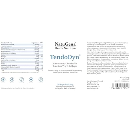 Thông tin sản phẩm NatuGena TendoDyn Glucosamine, Chondroitin & Native Type II Collagen, to Maintain Bones, Teeth, Nails and Connective Tissue, Capsules (1 Month Pack)