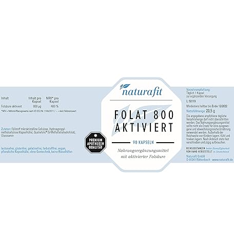 Sản phẩm naturafit Folat 800 Activated Capsules, Pack of 90 Capsules đang được bán với giá ưu đãi là $32.0133 tại nước Đức.