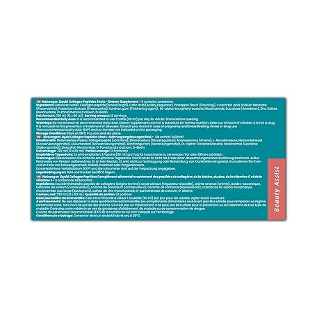 Thông tin sản phẩm Naturagen Liquid Collagen Peptide Shots - 12 x 60ml - 2500mg Hydrolysed Collagen - 12 Day Use - Type 1 and 3- With B3, B5, C, E Vitamins, Biotin and Zinc - Sugar Free and Gluten Free
