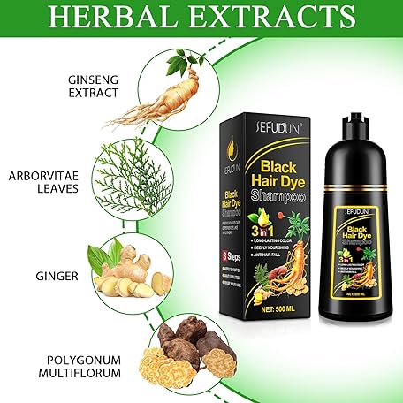 Thông tin sản phẩm Natural Black Hair Dye Shampoo, Black Hair Dye Shampoo 3 in 1 Instant Hair Colour Shampoo for Grey Hair, 100% Grey Coverage Black Hair Shampoo for Women and Men - Lasts 30 Days, 500 ml