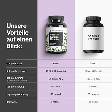 Sản phẩm natural elements Flora 21 Culture Complex - 21 Bacterial Strains + Organic Inulin - 180 Enteric Juice-Resistant Capsules - Laboratory Tested, Vegan, High Dose and Produced in Germany đang được bán với giá ưu đãi là $34.0298 tại nước Đức.