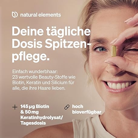 Thương hiệu natural elements là cái tên nổi tiếng được rất nhiều khách hàng trên thế giới chọn lựa. Với kiểu dáng đẹp mắt, sang trọng, sản phẩm natural elements Haar Vitamine – 180 Kapseln – hochdosiert mit Keratinhydrolysat, Biotin, Selen, Zink, Hirseextrakt, B-Vitaminen & mehr – für Haare, Haut & Nägel* – laborgeprüfte Qualität là sự lựa chọn hoàn hảo nếu bạn đang tìm mua một món cho riêng mình.