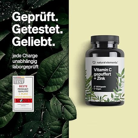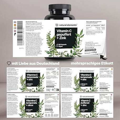 Sản phẩm natural elements Vitamin C – 120 Capsules – High Dose with 1000 mg + 15 mg Zinc – Vegetable Fermented & Buffered (pH Neutral, Acid-free, Stomach-Friendly) – Vegan, Laboratory-Tested Quality đang được bán với giá ưu đãi là $16.3827 tại nước Đức.