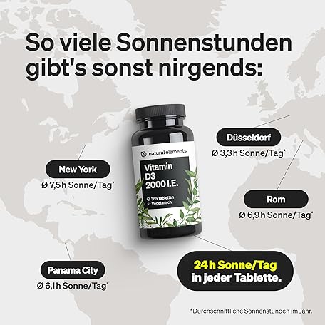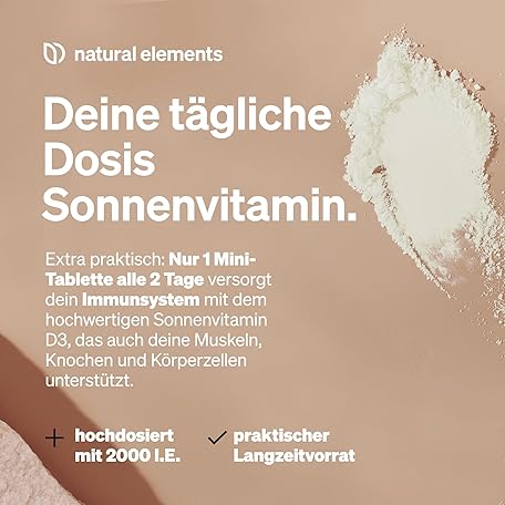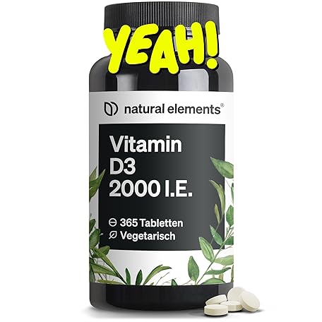 Sản phẩm natural elements Vitamin D3 2000 IU - 365 Tablets - for Bones and Immune System - High Dose, No Unnecessary Additives - Produced in Germany & Laboratory Tested đang được bán với giá ưu đãi là $19.0423 tại nước Đức.