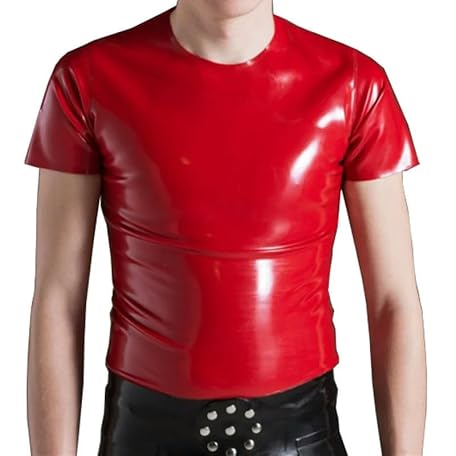 Natural Latex Men's T-Shirt Red Top Round Collar Rubber Tee Shirt Handmade Clothing
