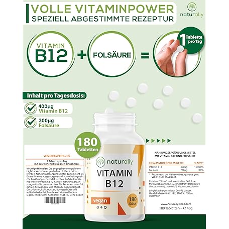 Thương hiệu naturally là cái tên nổi tiếng được rất nhiều khách hàng trên thế giới chọn lựa. Với kiểu dáng đẹp mắt, sang trọng, sản phẩm Natural Vitamin B12 Tablets with Folic Acid - 180 Tablets - Premium with Both B12 Active Forms & Folate 5-MTHF from Quatrefolic® - Laboratory Tested, No Additives, Vegan, Made in Germany là sự lựa chọn hoàn hảo nếu bạn đang tìm mua một món cho riêng mình.
