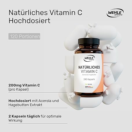 Sản phẩm Natural Vitamin C, 240 High Dose Vegan Capsules for a 4 Month Supply, Acerola Extract & Rose Hip Extract, 400 mg Pure Vitamin C per Daily Dose (2 Capsules), Laboratory Tested đang được bán với giá ưu đãi là $25.3643 tại nước Đức.