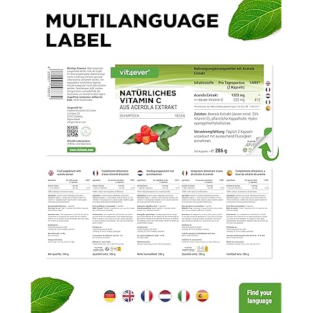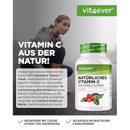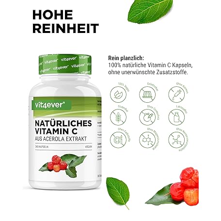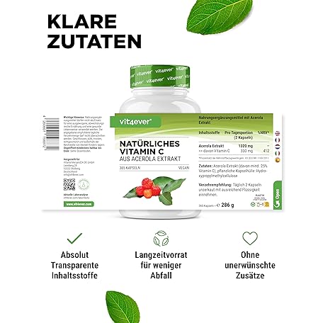 Sản phẩm Natural Vitamin C from Acerola Extract - 365 Capsules - High Dose - Premium Raw Material - No Unwanted Additives - Vegan đang được bán với giá ưu đãi là $25.179 tại nước Đức.
