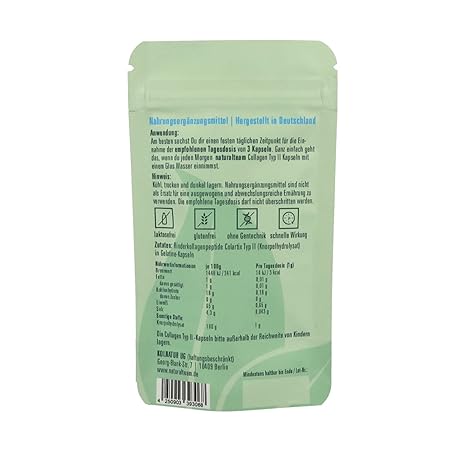 Sản phẩm naturalteam Collagen Capsules (Pack of 48, 21 g) - Type II Collagen - High Bioavailability - Natural Source - Supports Healthy Joints and Cartilage đang được bán với giá ưu đãi là $18.0831 tại nước Đức.