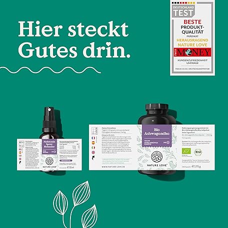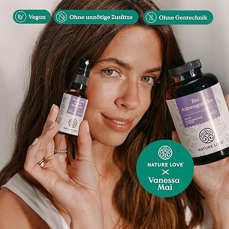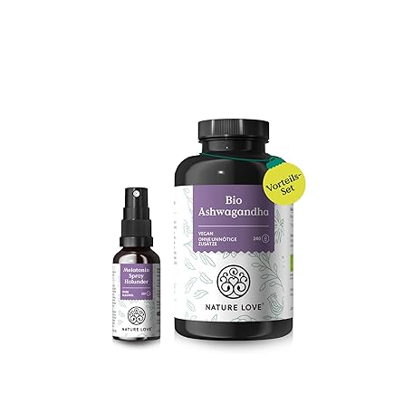 Sản phẩm NATURE LOVE® Easy Release Set with Vanessa Mai - 240 Capsules Organic Ashwagandha with 1950 mg per Daily Dose - Melatonin Spray Elderberry with 0.5 mg per Daily Dose - High Dose đang được bán với giá ưu đãi là $36.8311 tại nước Đức.