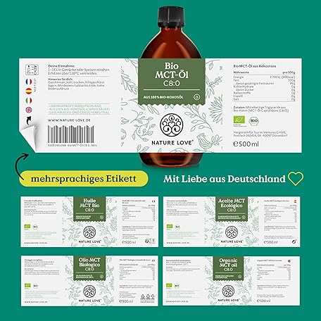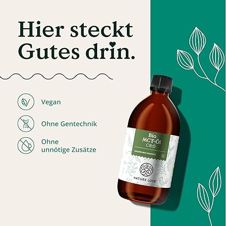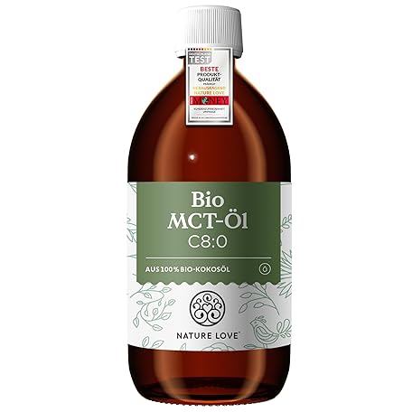 NATURE LOVE® Organic MCT Oil C8 - 500 ml for Your Keto Diet - Made from 100% Organic Coconut Oil - for Ketogenic Diet - Tasteless and Odourless - Exogenous Ketones - Vegan